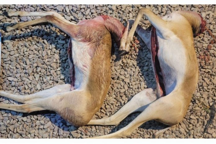 Al identificar a los ocupantes, los efectivos constataron que en el interior del rodado se hallaba una carabina calibre 22 con mira colocada. Al continuar con la inspección visual del vehículo, observaron en la caja de carga dos reses de antílope recientemente faenadas.