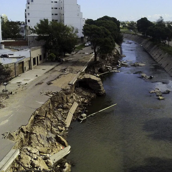 A partir de los relevamientos realizados, posteriores al temporal, se logró detectar que más del 40% de las losas de hormigón que revisten los taludes del Canal Maldonado quedaron destruidas y el restante se encontraba en un estado de avería y descalce muy importante.