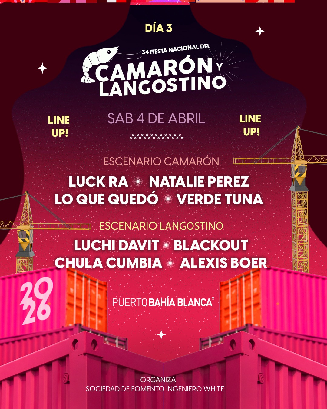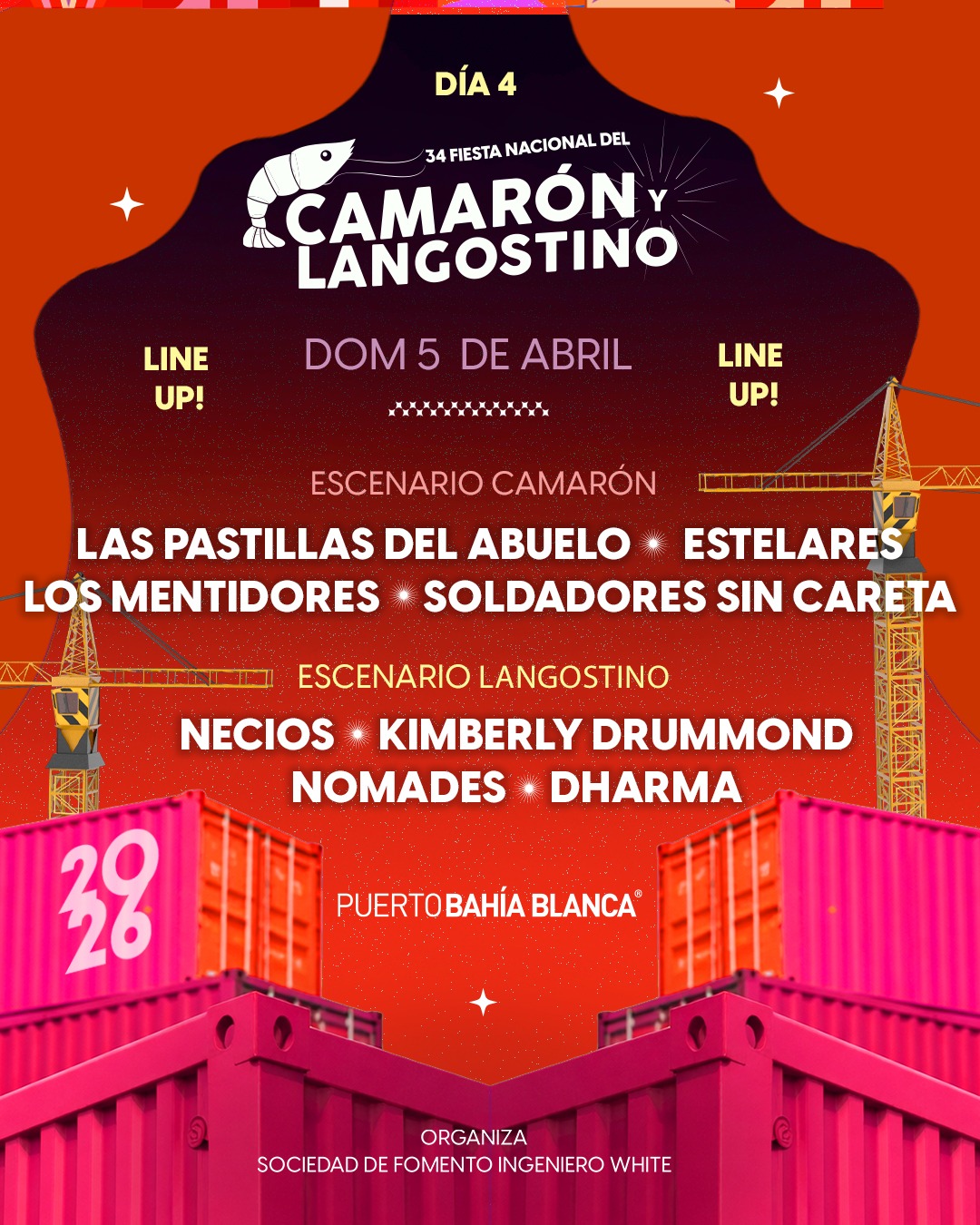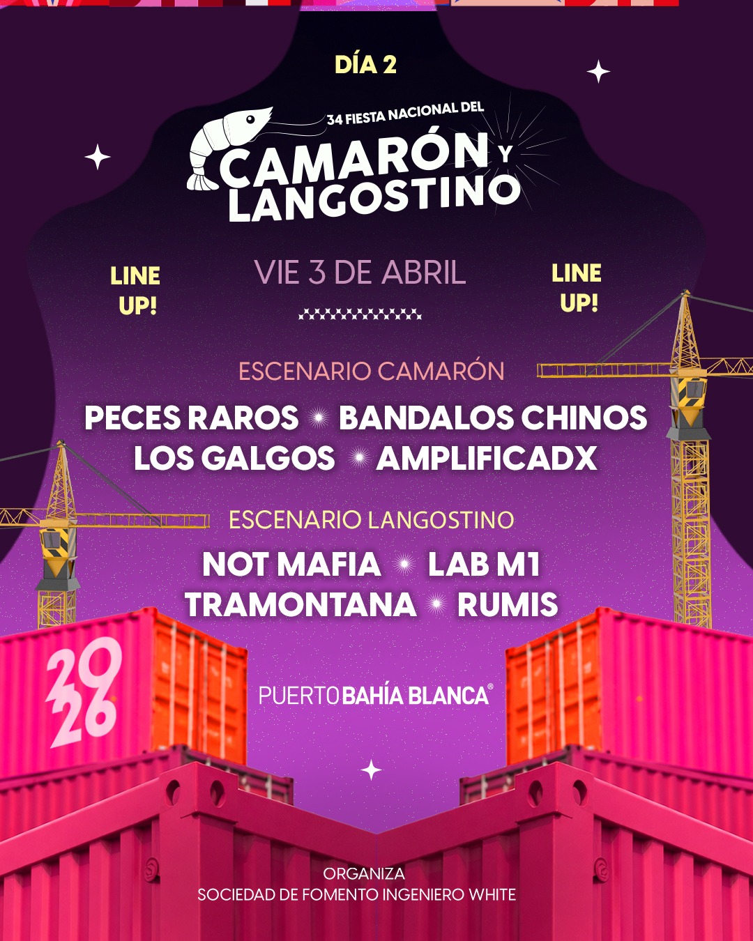 Organizada por el Puerto de Bahía Blanca y la Sociedad de Fomento de Ingeniero White, la fiesta contará con más de 100 stands, propuestas recreativas y dos escenarios principales: el Camarón —de mayor infraestructura— y el Langostino, dedicado íntegramente a artistas locales.