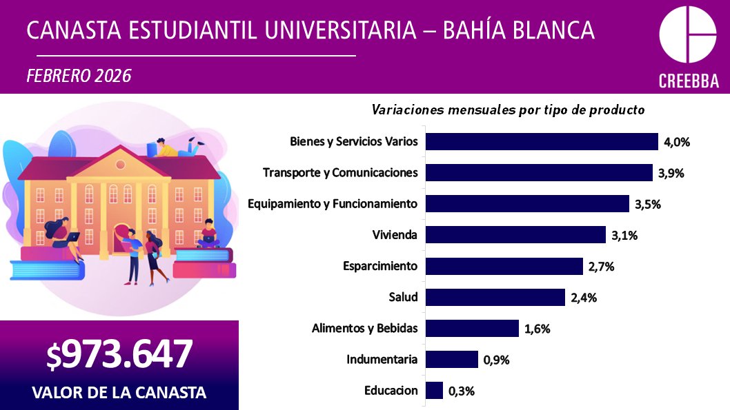 Así lo indica el relevamiento mensual del Creebba para un alumno de la UNS, que es gratuita.